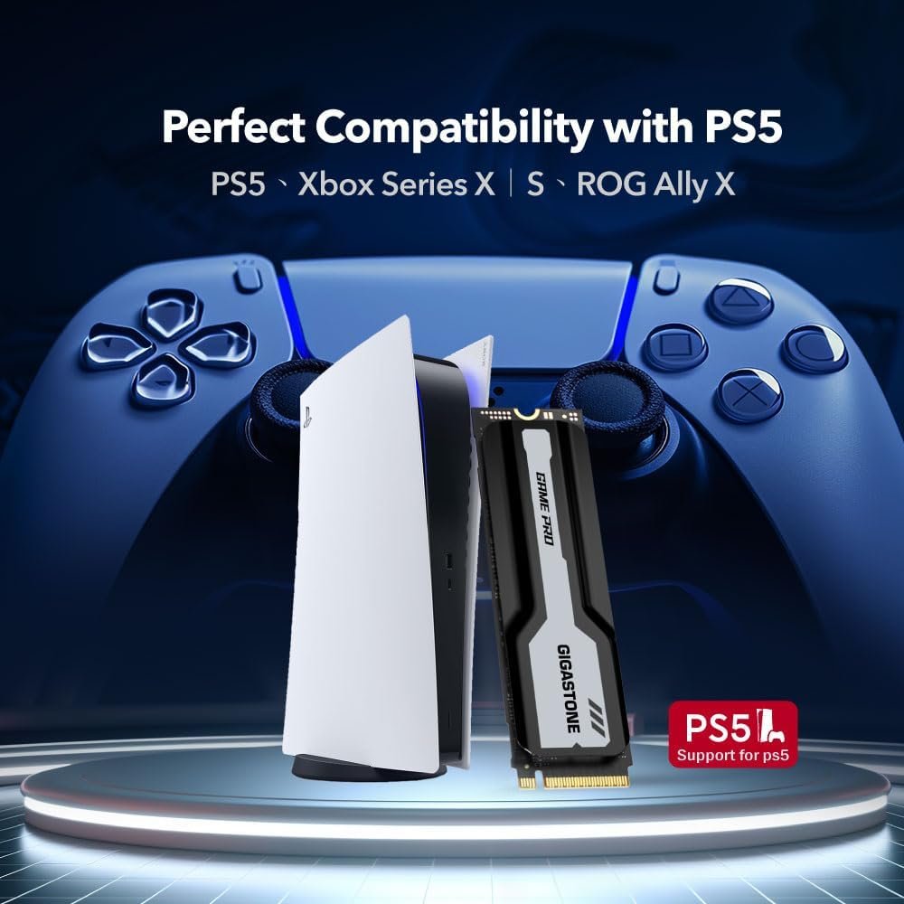 GIGASTONE M.2 SSD 4TB PS5 SSD with Heatsink PCIe 4 NVMe M.2 SSD up to 5,000MB/s Internal SSD PS5 Heat Dissipation Gaming PC Desktop Laptop Storage for fast Game Load Video Editing 3D Creators