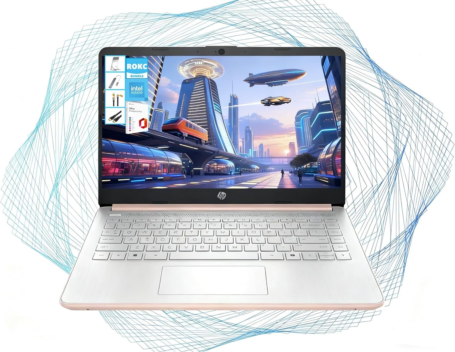 【Versatile Connectivity & Accessories Bundle】 Includes USB-C, USB-A, HDMI, and SD Card Reader ports, plus Wi-Fi and Bluetooth. Comes with ROKC accessories like a portable 128GB SSD, universal holder, and 4-in-1 hub for enhanced usability. Windows 11 Home in S Mode with 1 Year Microsoft Office and 1TB Cloud Storage Subscription