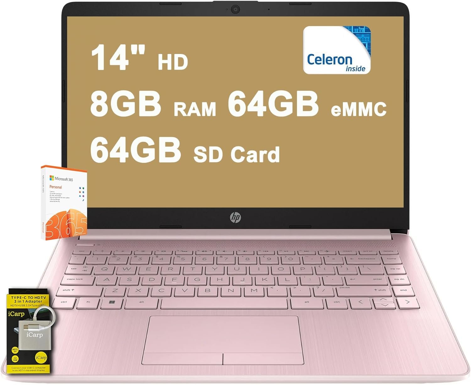 Microsoft Windows 11 Home in S mode, HP True Vision 720p HD camera, Bluetooth, Fast Charge, Auth USB-C Hub