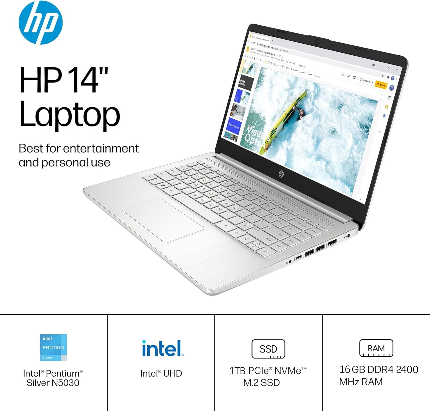 EFFICIENT PERFORMANCE FOR DAILY USE — Powered by an Intel Pentium Silver N5030 Processor and Intel UHD Graphics, this laptop smoothly handles everyday tasks and light multimedia. With 16GB DDR4 RAM and a 1TB PCIe SSD, it offers fast multitasking, quick system response, and abundant storage for work and entertainment