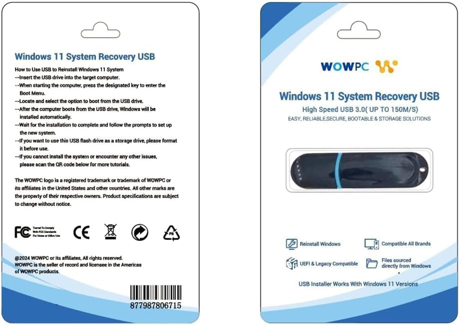 This laptop comes with a WOWPC Recovery USB to assist with system recovery and troubleshooting.