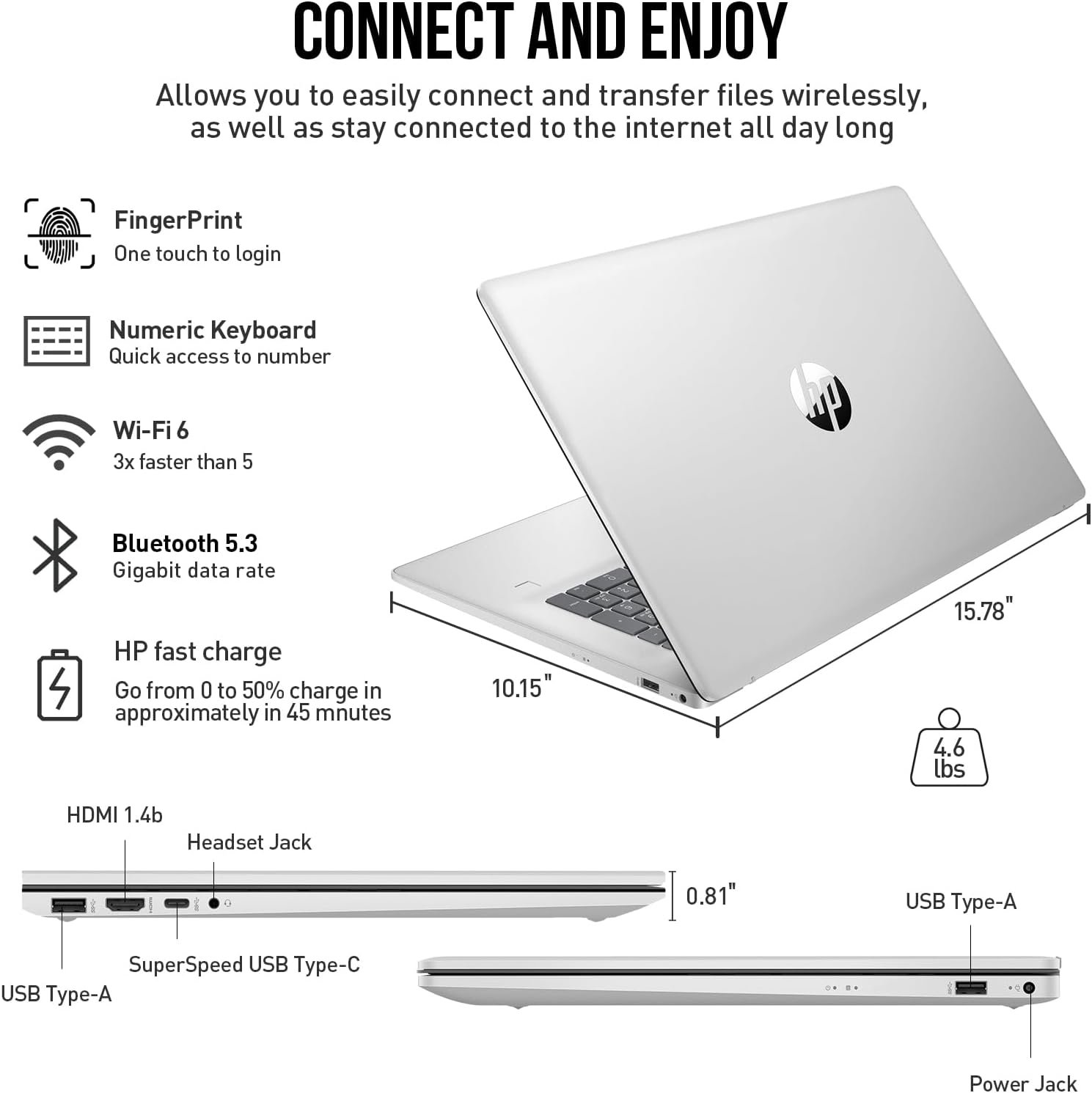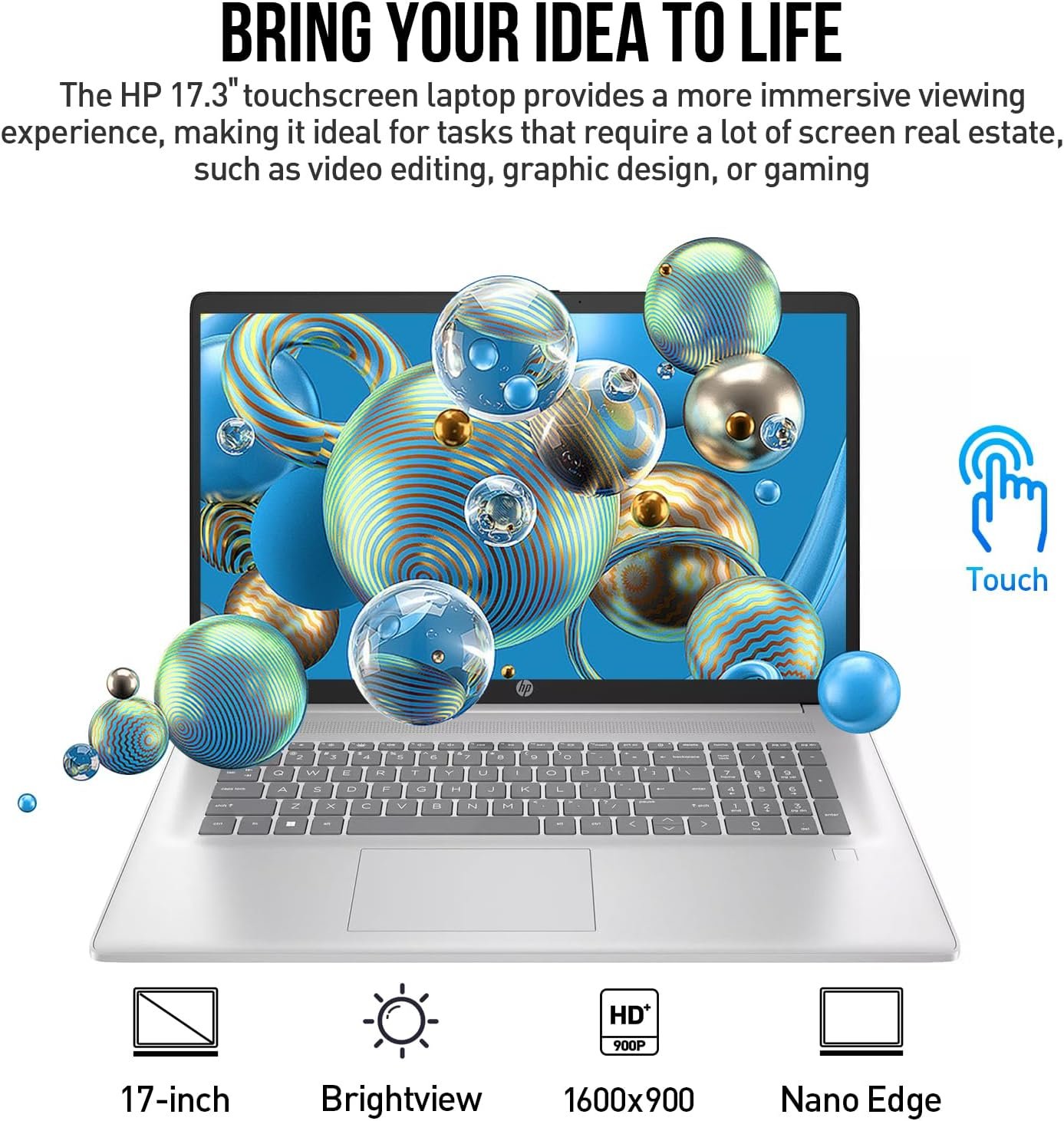 PREMIUM HP 17.3 TOUCHSCREEN LAPTOP: Experience exceptional clarity with the HP 17.3-inch HD+ (1600 x 900) BrightView Touchscreen display. The HP laptop 17 inch screen offers a truly immersive experience, ideal for multitasking, streaming, or managing multiple windows at once. Plenty of screen real estate lets you tackle tasks with ease and efficiency. Whether for work, study, or entertainment, the HP laptop touchscreen computer combines performance and versatility to meet all your needs