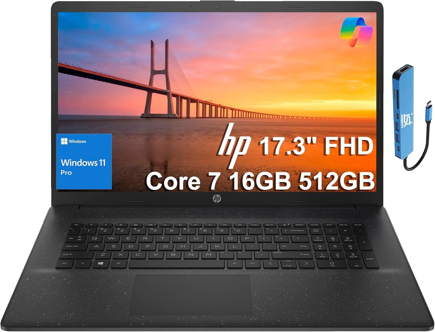 Elevate your experience with the HP 17.3 inch Laptop PC—crafted sustainably with recycled plastics, featuring an ergonomic lift-hinge, high-res screen, narrow bezel design, and a powerful Intel Processor for eye-friendly, planet-conscious performance in a sleek package.