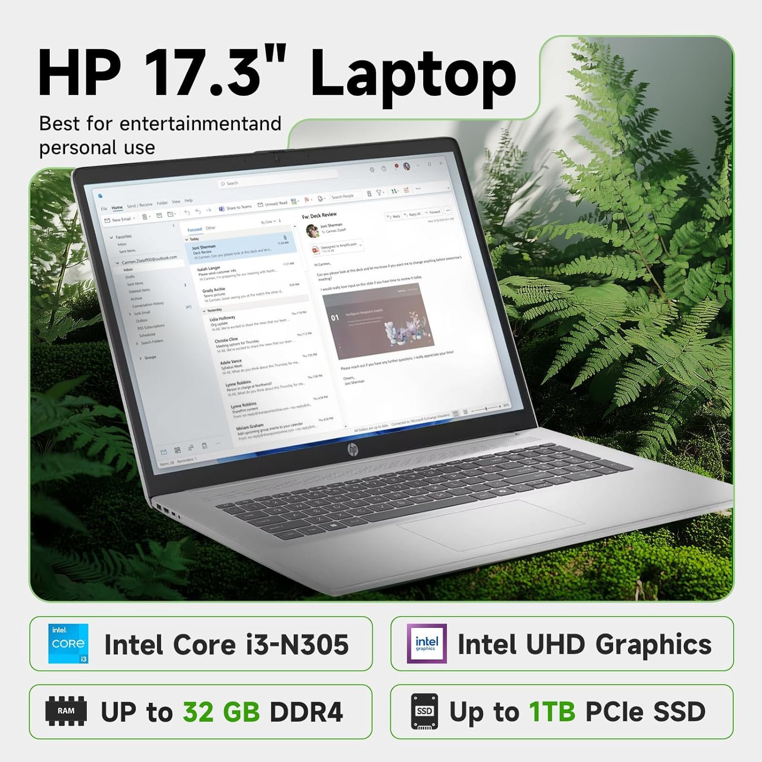 HP 17 Laptop for Business & Study, Intel 8-Core i3 Processor, 17.3″ HD+ Anti-Gla…