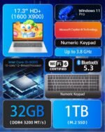HP 17 Laptop, Intel 8-Core i3, Anti-Glare Display, 32GB RAM, 1TB SSD, Windows 11…