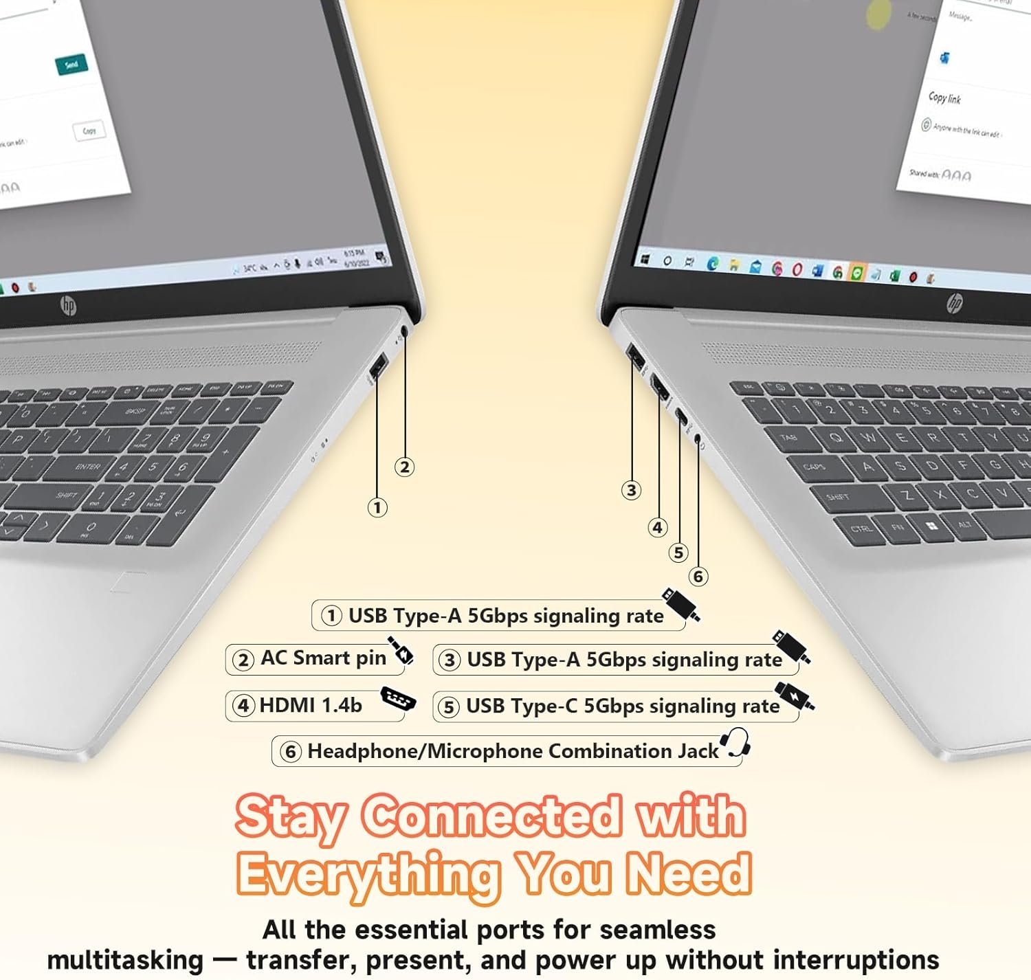 ➤【Lightweight, Durable, and Ready to Go】The Laptop PC weighing only 4.6lbs and just 0.78” thin, it’s made for life on the move. Wi-Fi 6 and Bluetooth 5.3 offer faster, more reliable connectivity. With USB-C, USB-A, HDMI, and more, you’ll always stay connected. HP Fast Charge powers up to 50% in about 45 minutes, with battery life up to 9.5 hours