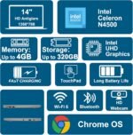 HP Chromebook 14 Home and Student Laptop 14″ HD Antiglare Intel Celeron N4500 4G…