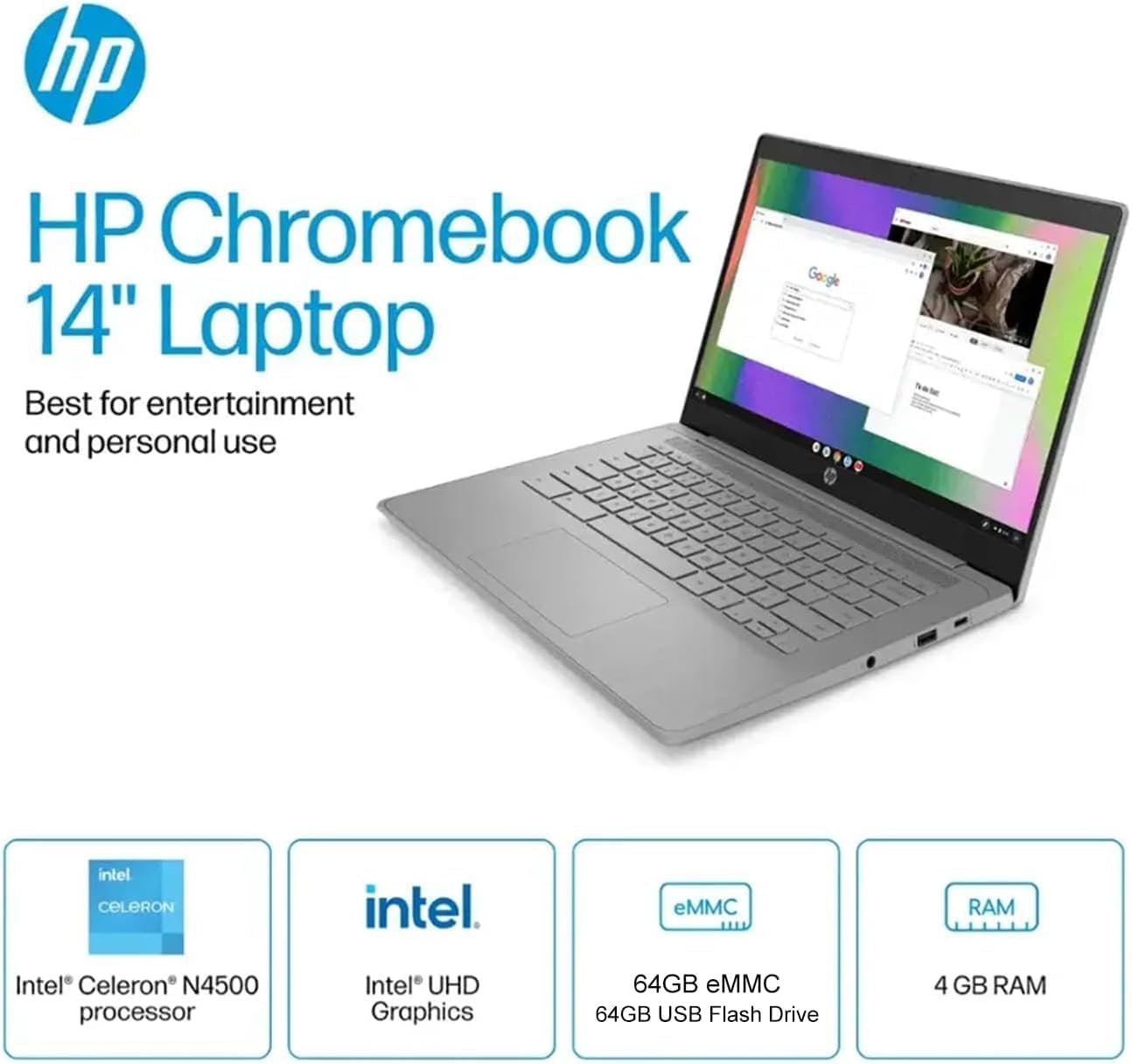 HP Chromebook 14 Laptop, Intel Celeron, 4GB RAM 64GB eMMC (Optional Upgrade to 8…