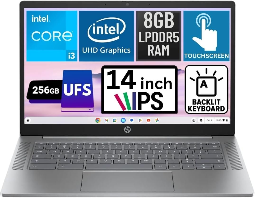 HP Chromebook Plus 14 Inch Touchscreen Laptop Full HD IPS Intel Core i3-N305 8GB…