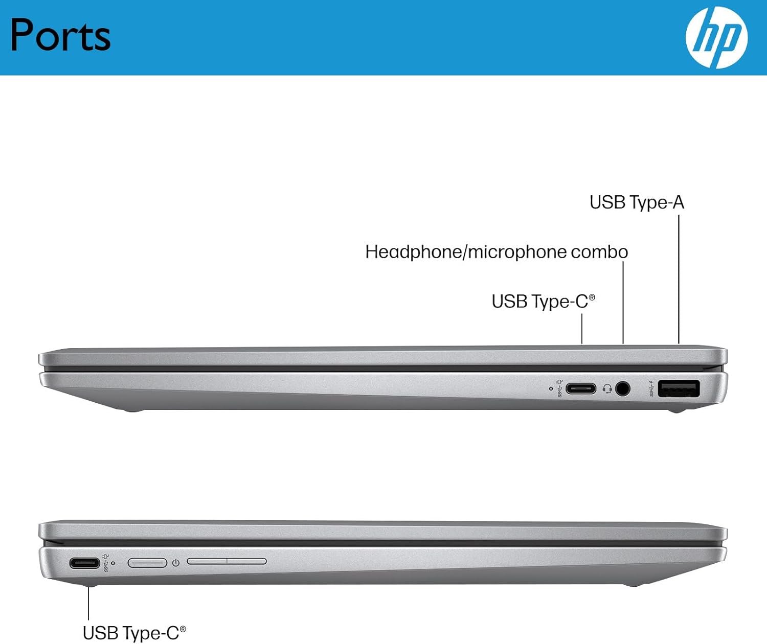 This hp student laptop is equipped with Wi-Fi 6, Bluetooth 5.3, 1 x USB-A, 2 x USB-C, 1x Headphone/Microphone Combo Jack, Backlit Keyboard.