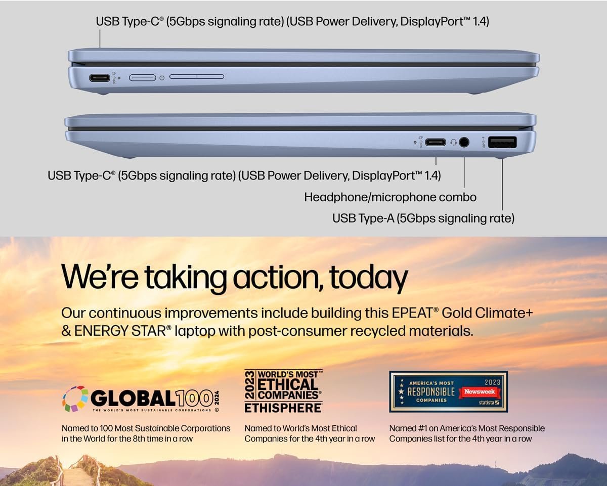 HP Chromebook laptop touchscreen with two USB Type-C port for ultra-quick data transfer, video streaming, and battery charging;