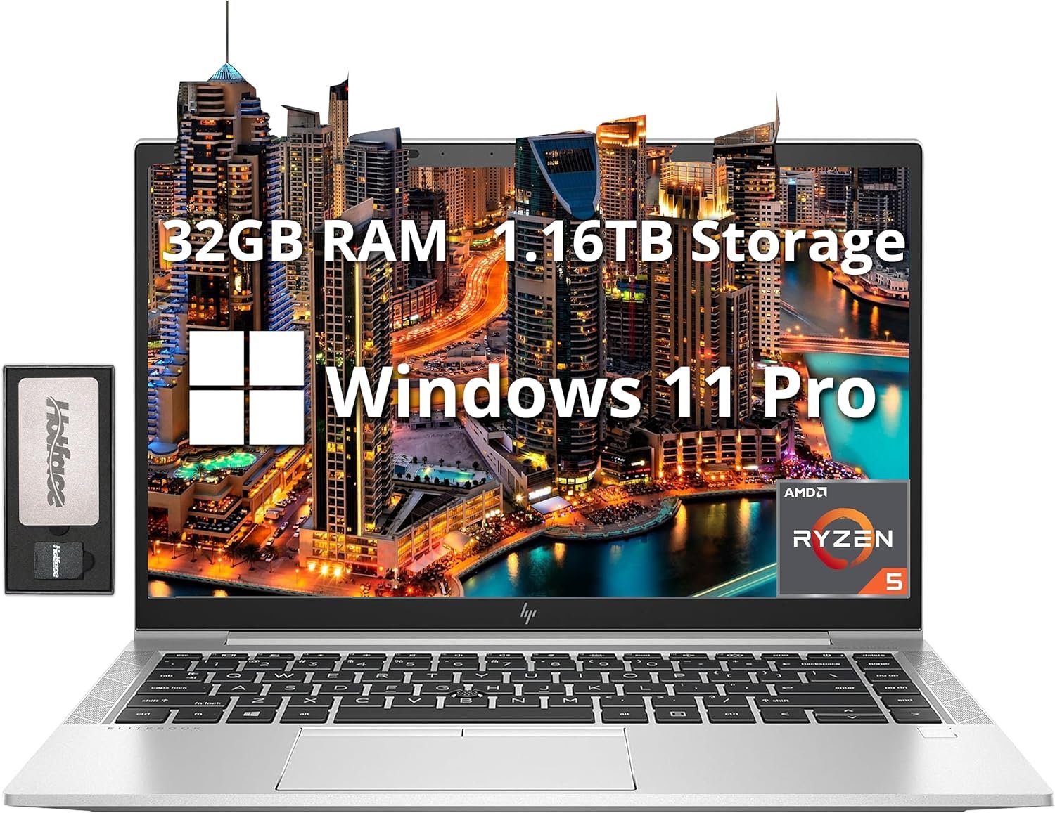 HP EliteBook 845 G7 14″ FHD Laptop, AMD Ryzen 5 Pro 4650U, 32GB RAM, 1.16TB Stor…