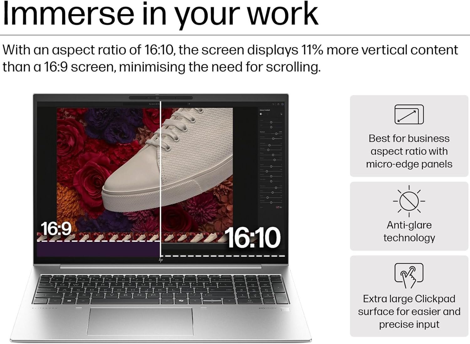 16″ diagonal, WUXGA (1920 x 1200), IPS, anti-glare, 100% sRGB