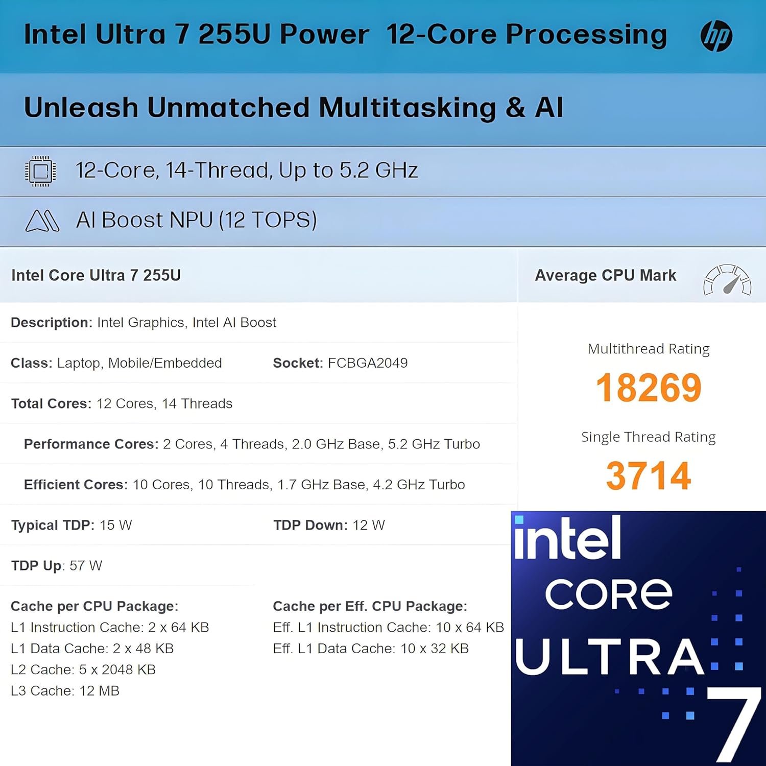 [Powerful Performance] Intel Ultra 7 255U, 12 Cores (2P + 8E + 2 LPE) / 14 Threads, Max Turbo up to 5.2GHz, 12 MB Cache. Intel Graphics. Intel AI Boost NPU (12 TOPS).