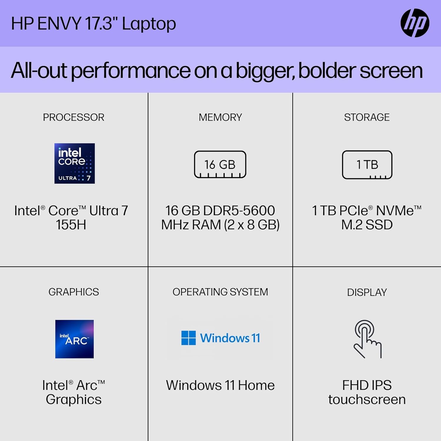The bigger, the bolder, the better. You want to do what you love and elevate it every possible way. This HP Envy 17.3 inch laptop levels up your go time, camera time, and free time with a pixel-perfect display and collaboration technology. Whether you’re perfecting a content idea with friends or pitching it loud and clear to collaborators, this laptop helps make all you do more powerful. The 5MP IR camera with collaboration technology lets you present your best self and with multi-camera support you can have a more immersive experience with multiple camera views. And with an Intel processor you’re ready to show them what you’ve got. The amazing display and Poly Studio delivers an immersive cinematic experience to turn your laptop into your personal theater for winding down at night. Plus, with a long battery life, it’s full stream ahead. Whether you’re catching up on emails during your commute or focused on a project at the local coffee shop, keep your business yours. This laptop layers built-in security with the latest easy-to-use privacy features, like a manual camera shutter and technology that locks your laptop when you step away. That’s personalized privacy beyond passcodes. And with a sustainable design, serious power, and all the apps you could imagine, your flow is just like you—unstoppable. The HP ENVY 17.3 inch Laptop comes with a 100 W USB Type-C power adapter and goes from 0 to 50% charge in 30 minutes. Plus, it contains recycled materials and is EPEAT Gold and ENERGY STAR Certified. HP is here to help. This HP computer comes with 1-year limited hardware warranty and 1-year limited technical support for software and initial setup with 24-hour, 7 days a week web support when shipped from and sold by Amazon.com.