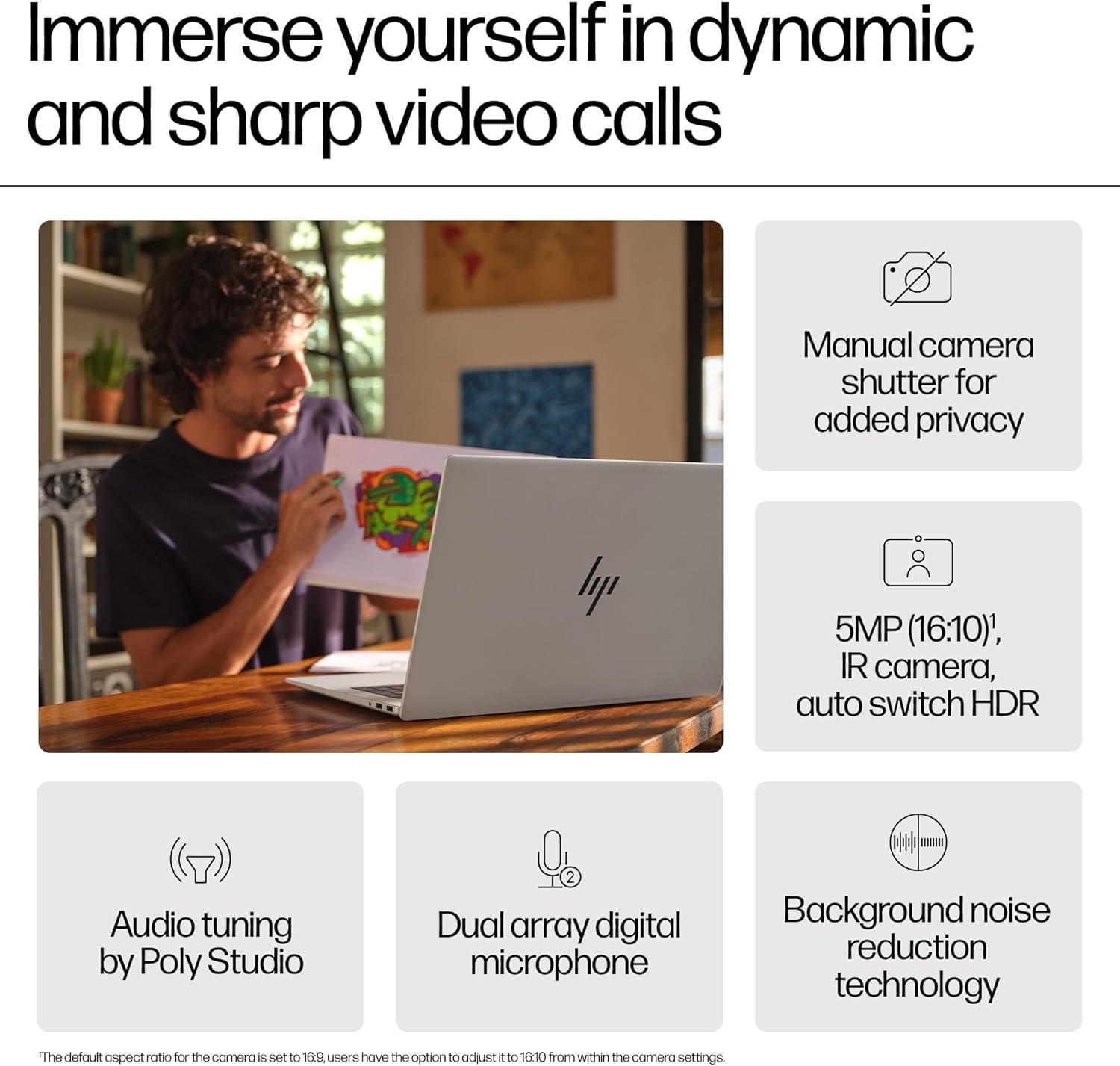 Webcam: 5MP IR camera with temporal noise reduction and integrated dual array digital microphones