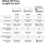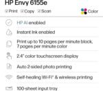 The HP Envy 6155e All-in-One delivers color printing, scanning and copying, plus 100-sheet paper capacity. It includes wireless and mobile printing capabilities to keep your multifunction printer connected, and prints quality documents and photos every time with true-to-screen tech. This inkjet printer lets you easily navigate print jobs with its intuitive color touchscreen. It’s also AI-enabled to intuitively adapt to your workflow, with wireless and security features that keep your multifunction printer up to date and secure.