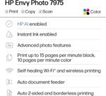 PERFECT FOR HOME – The HP Envy Photo 7975 is great for printing documents, high-quality true-to-screen borderless photos, creative projects and more. Print speeds up to 10 pages per minute color, 15 pages per minute black.