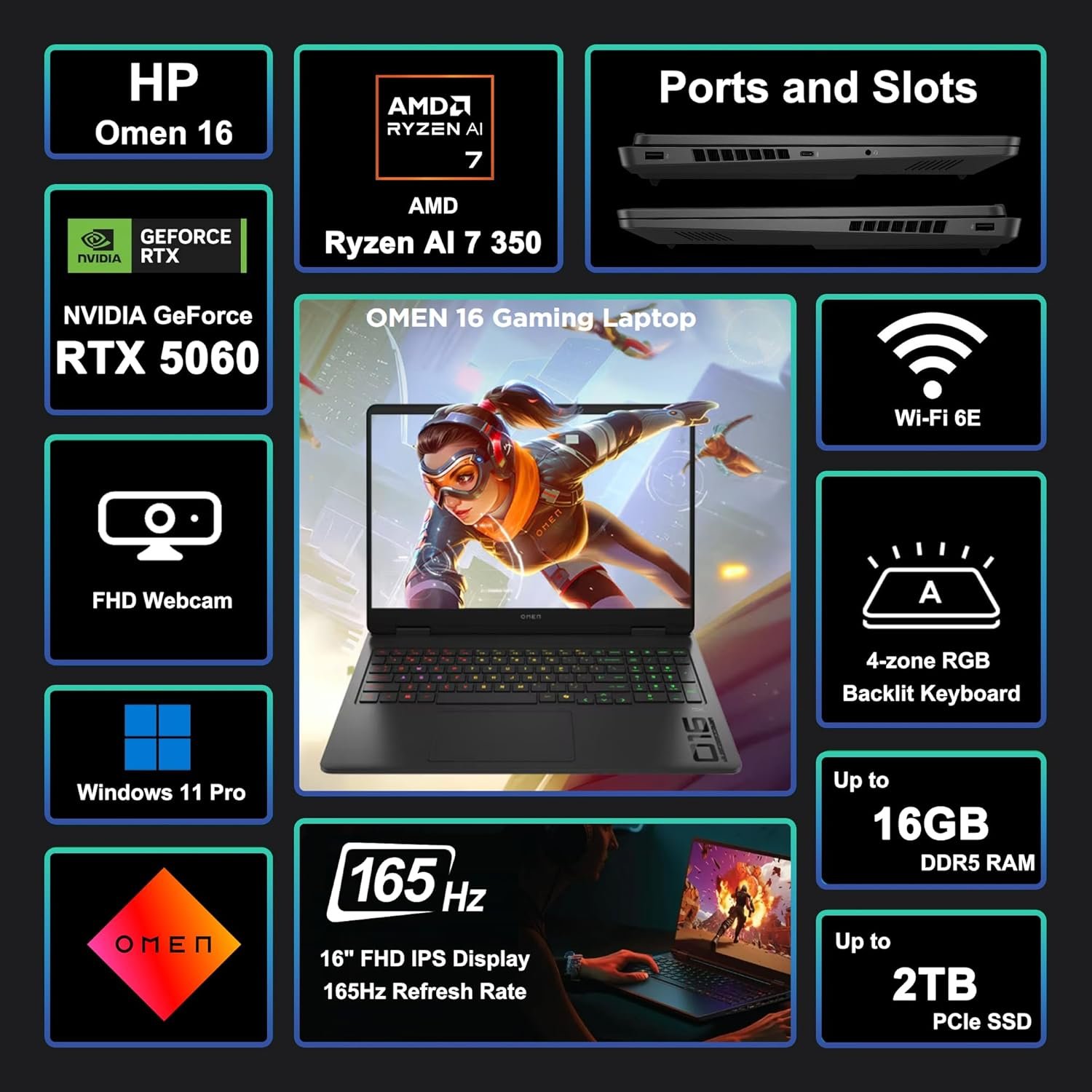 Windows 11 Professional, 4-zone RGB Backlit Keyboard, HyperX Audio, DTS:X Ultra, Wi-Fi 6E, FHD Privacy Camera, Auth USB-C Hub