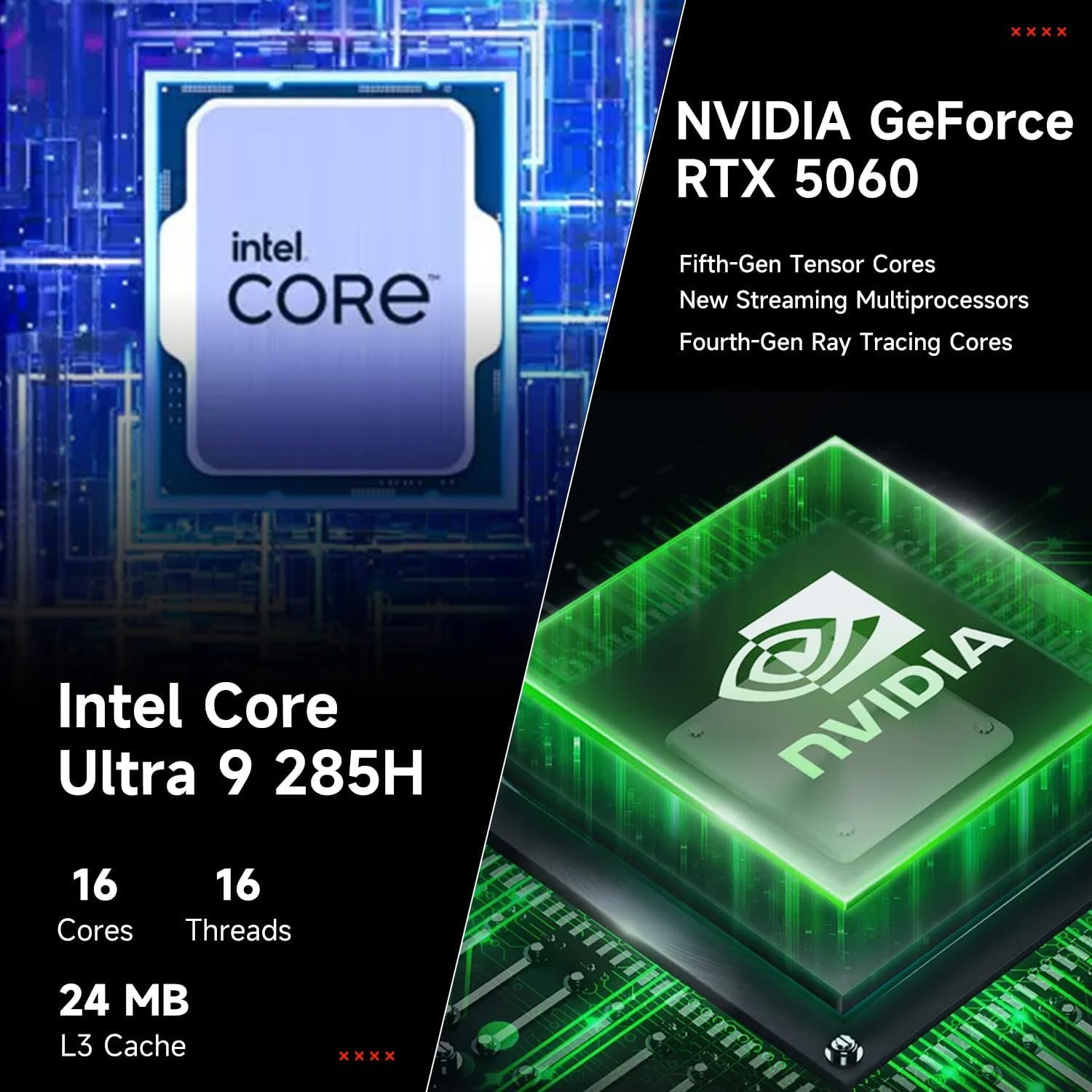 【Processor】Intel Core Ultra 9 285H (16 Cores, 16 Threads, 24MB L3 Cache, Base Frequency at 2.7GHz, Up to 5.4GHz at Max Turbo Frequency), with NVIDIA GeForce RTX 5060 Graphics (8GB GDDR7)