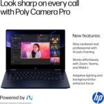 Processor Intel Core Ultra 7 256V Processor (8 Cores, 8 Threads, Up to 4.8 GHz max boost clock, 12 MB L3 cache); Intel AI Boost (47 NPU TOPS) Display 14″ WUXGA (1920×1200) IPS, micro-edge, edge-to-edge glass, 400 nits, 62.5% sRGB, Touch Graphics Integrated Intel Arc 140V GPU (8GB) Memory 16 GB LPDDR5x-8533 MT/s Storage 2TB PCIe NVMe M.2 SSD Networking Wi-Fi 6E (2×2) & Bluetooth 5.3 Operating System Windows 11 Pro 64-bit Battery 3-cell, 59 Wh Li-ion polymer Camera 5MP IR camera with temporal noise reduction and integrated dual array digital microphones Security Camera privacy shutter; Mic mute key Keyboard Full-size, backlit, darker atmospheric blue opaque keyboard; HP Imagepad Dimensions 12.32 in (W) x 8.60 in (D) x 0.58 in (H Weight 3.06 lb Sound Poly Studio with dual speakers; DTS: X Ultra