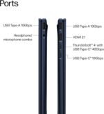 STAY CONNECTED — Stay connected with versatile ports, including 2x USB-A 3.2 Gen 2, Thunderbolt 4, USB-C 3.2 Gen 2, HDMI 2.1 and Headphone/Mic Combo Jack. Enjoy blazing-fast wireless speeds with Intel Wi-Fi 6E and seamless device pairing via Bluetooth 5.3. Work comfortably in any lighting with a Backlit Keyboard.