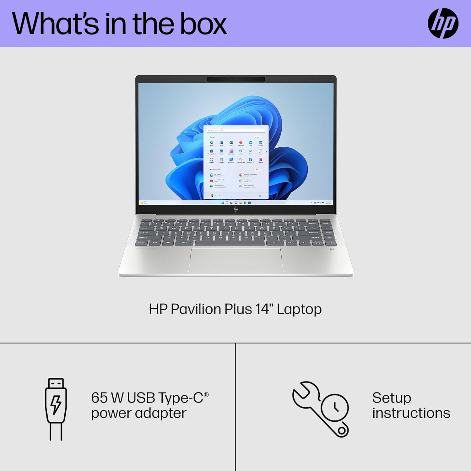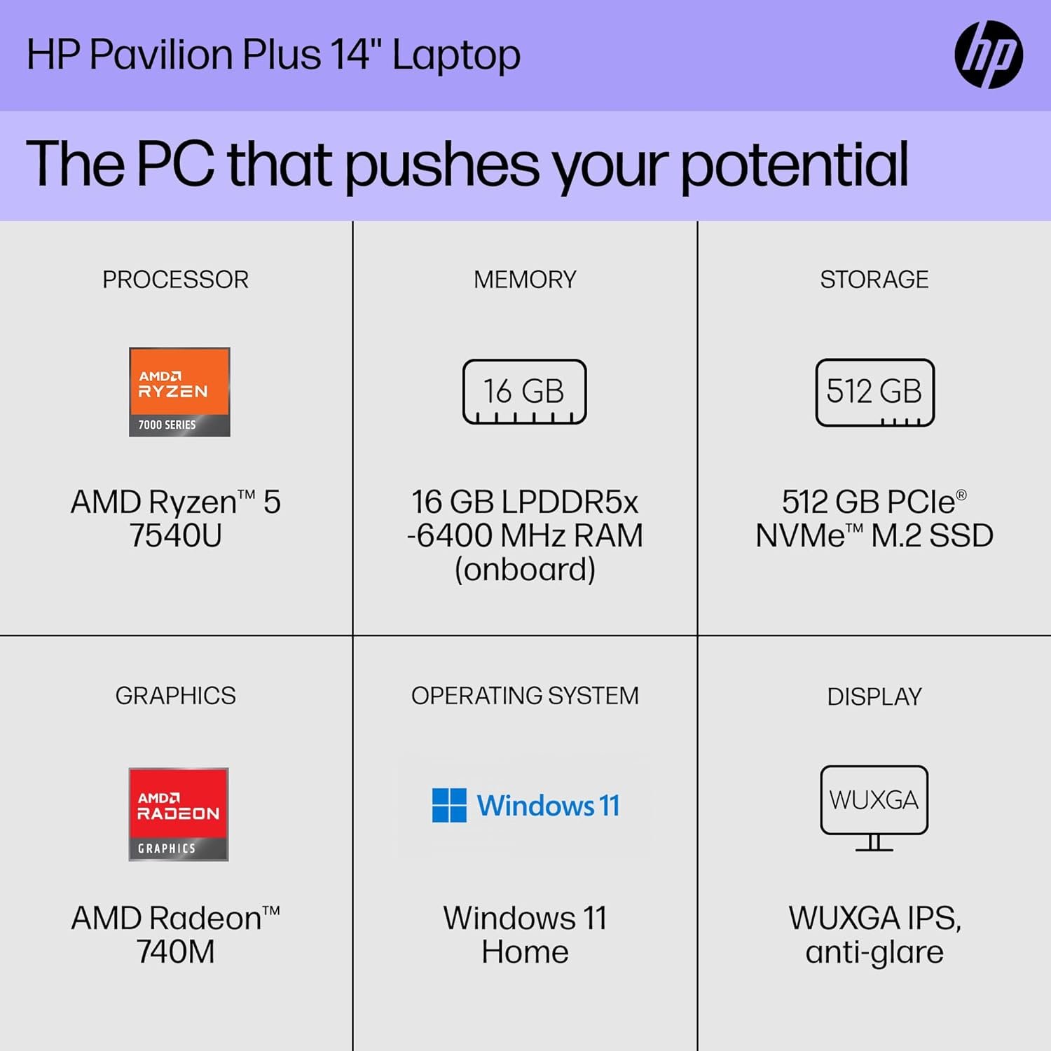 HP Pavilion Plus 14 inch Laptop, WUXGA Display, AMD Ryzen 5 7540U, 16 GB RAM, 51…