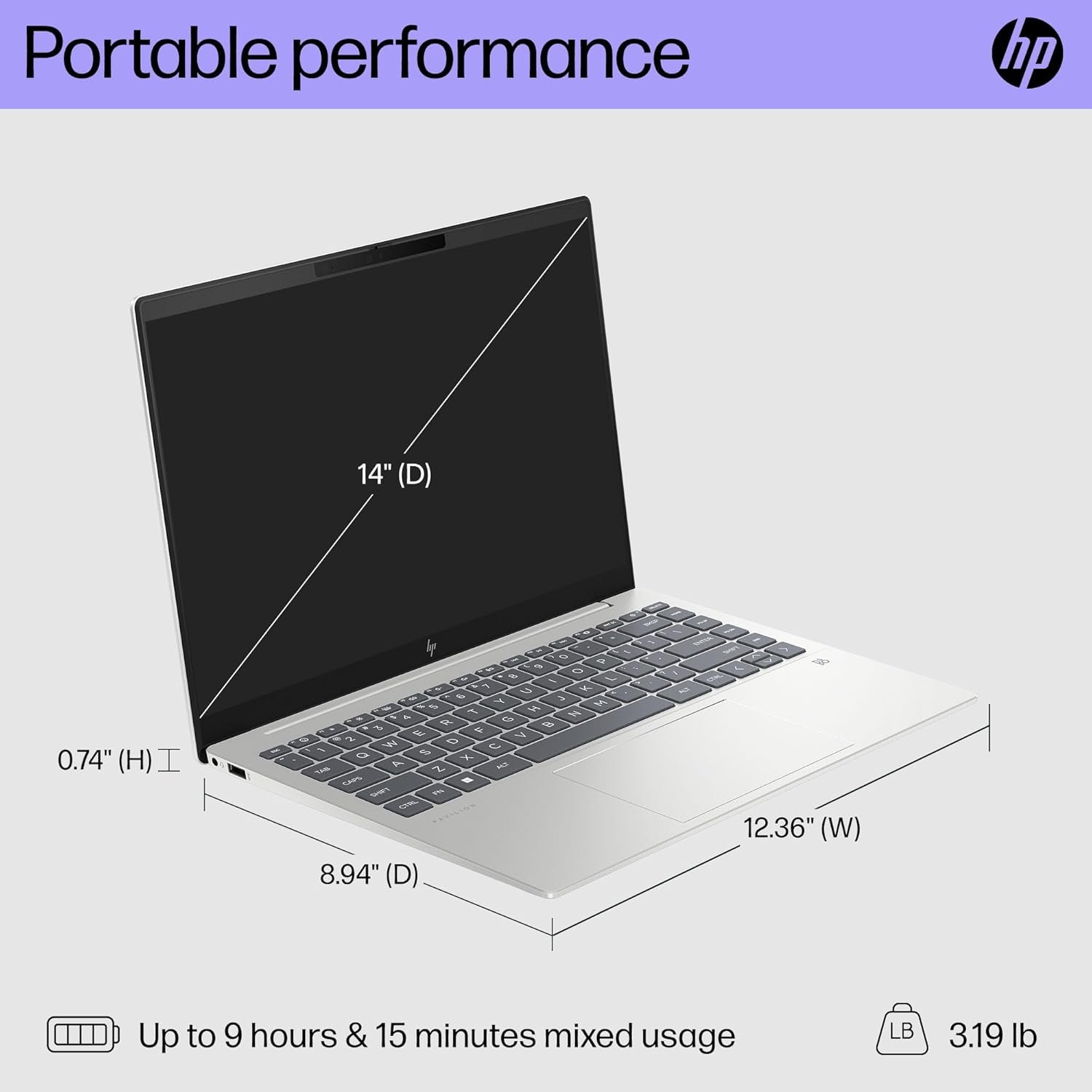 A laptop to help you step up and out. With a thin, sleek design, the HP Pavilion Plus 14 inch diagonal Laptop PC looks professional, and with an AMD Ryzen 7000 series 5 processor, you have the power to follow through. Whether it’s an all-day deadline crunch, impromptu brainstorm session, or an all-night gaming getaway, this laptop has an all-day battery life, intelligent Wi-Fi and high-performance power to handle all the things you need it to. Powered with a reliable AMD Ryzen processor, for astonishing performance to handle all the things you need it to. The 14 inch diagonal display brings out all the dynamic details of your movies, games, and projects. A large-font, high-contrast keyboard gives you effortless accuracy, for a laptop that’s pixel perfect and perfectly you. Log in quickly through the 5MP IR camera with Windows Hello face recognition. HP Presence technology connects you to your co-workers, classmates, or collaborators like never before thanks to smart HP video controls. The dual array mic carries your voice with clarity whether you’re presenting a big project or making small talk. A manual camera shutter button, ensures you’re only on cam when you mean to be. With an EPEAT Gold Registered and ENERGY STAR Certified design, you can be confident your PC does good things for the planet, while doing amazing things for you. HP is here to help. This HP computer comes with 1-year limited hardware warranty and 1-year limited technical support for software and initial setup with 24-hour, 7 days a week web support when shipped from and sold by Amazon.com. ENERGY STAR and the ENERGY STAR mark are registered trademarks owned by the U.S. Environmental Protection Agency. Based on U.S. EPEAT registration according to IEEE 1680.1-2018 EPEAT. EPEAT status varies by country. Visit www.epeat.net for more information.