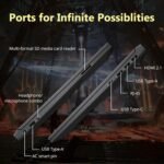 Ports: 1 x HDMI 2.1, 1 x USB-A 3.0, 2 x USB-A 3.0, 1 x RJ-45, 1 x Headphone Jack, 1 x AC smart pin, 1 x Media Card Reader