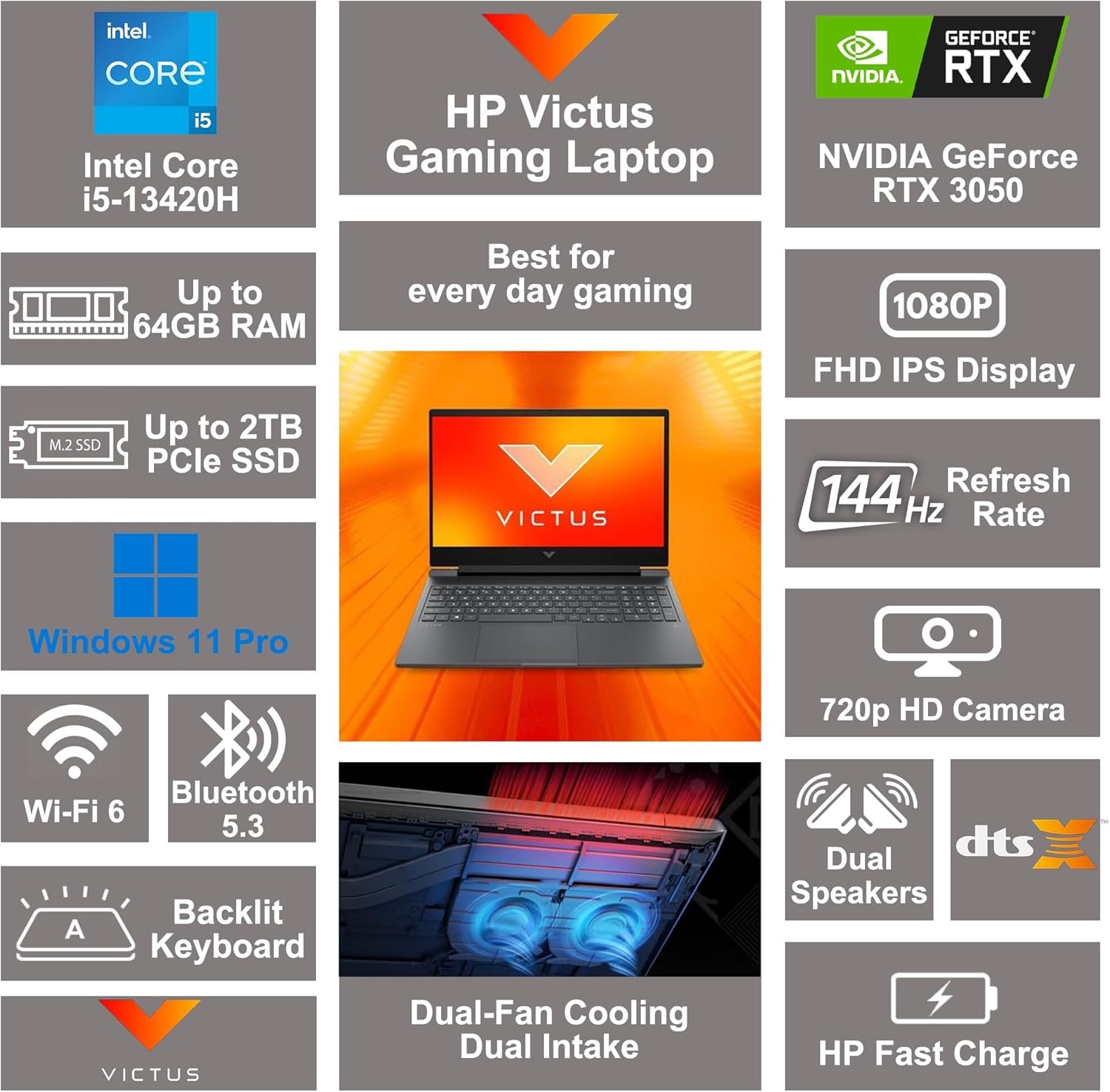 HP Victus 15 Gaming Laptop 15.6″ FHD IPS 144Hz Intel 8-core i5-13420H (>i7-12650…