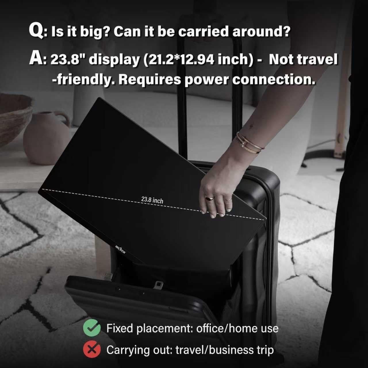 【InnoView 23.8″ Large Portable Monitor】The 23.8″ portable monitor offers expansive viewing.This 23.8″ portable monitor is lightweight and easy to carry, making it the perfect second screen for enhancing your workflow, entertainment on the go.Perfect for professionals and gamers alike.
