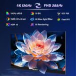 【Dual-Mode Gaming】: Switch between 4K UHD at 120Hz and FHD at 288Hz for an exceptional gaming experience—whether you’re immersed in visually stunning Triple-A titles or high-speed competitive games. With FreeSync technology and HDR support, it helps minimize stuttering and screen tearing for clearer, smoother gameplay.