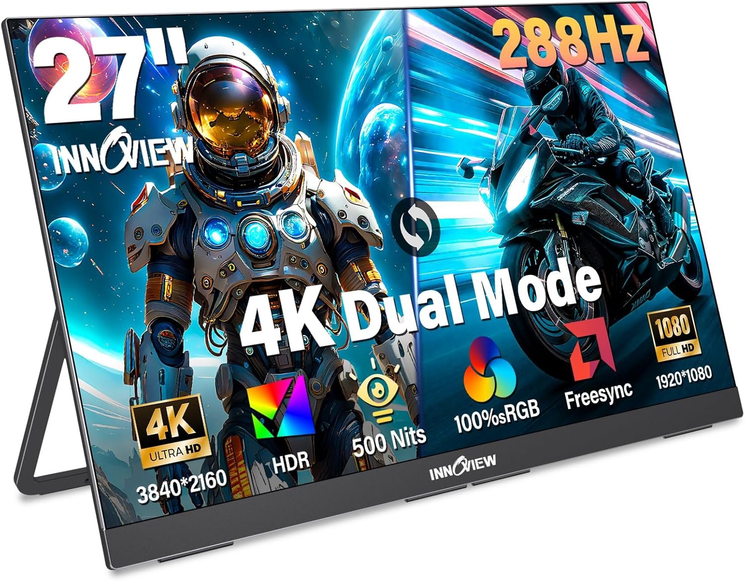 InnoView 27 Inch Monitor Dual Mode 4K UHD 120Hz/FHD 288Hz Portable Monitor for L…