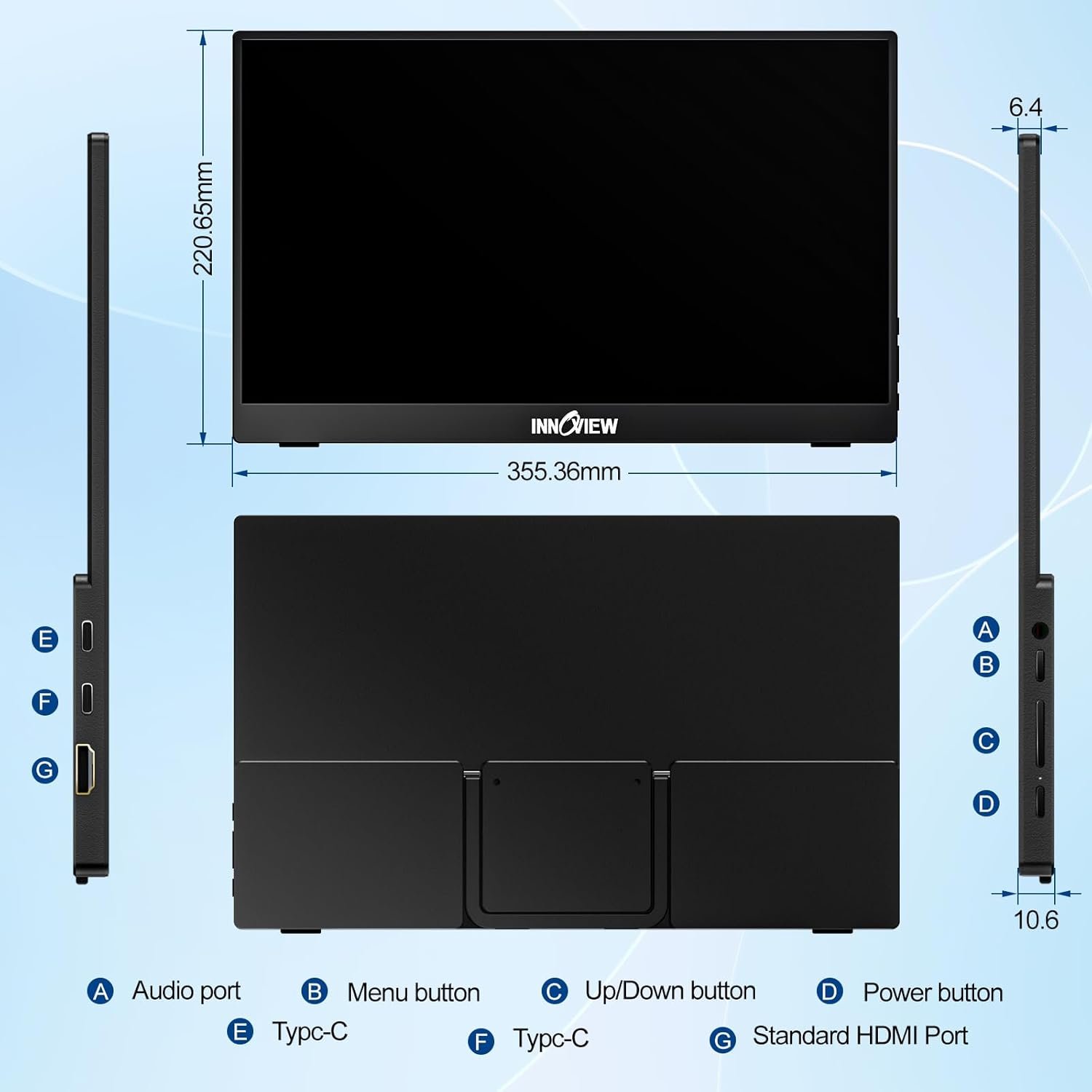 [Exclusive Sleeve and Integrated Stand] InnoView travel monitor for laptop + exclusive bag is a perfect combination. Effectively reduce screen wear and enhance protection. It is lightweight and portable and will never be a burden on your daily commute. Laptop monitor extender built-in stand, the suitable viewing angle can be adjusted within 90°