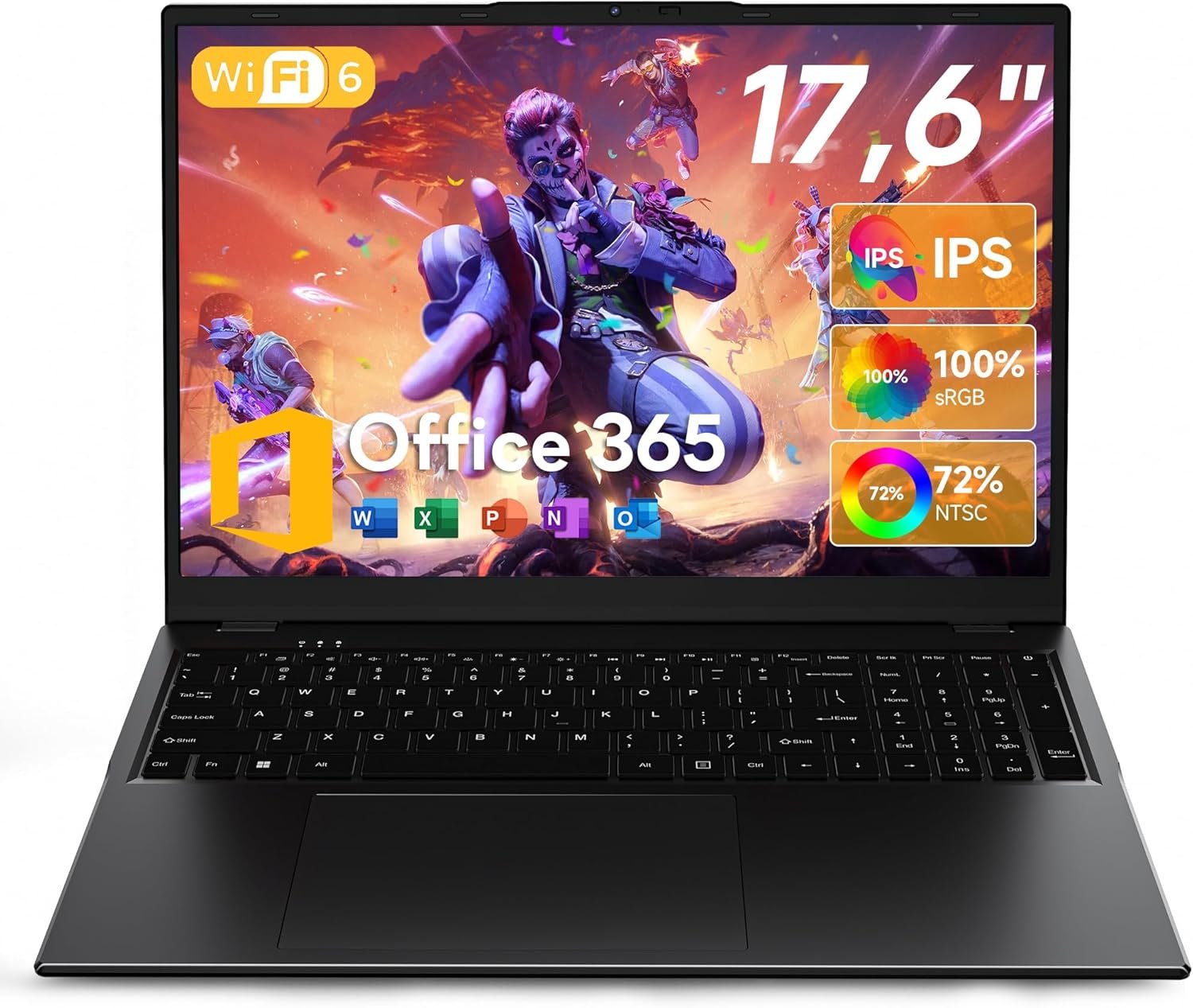 Immersive 17.6-Inch FHD Laptop Screen : Enjoy a stunning 17.6 inch FHD 1920×1200 16:10 display with 100% sRGB color, delivering clear details and vibrant colors. Perfect for school projects, business presentations, video streaming, and light gaming