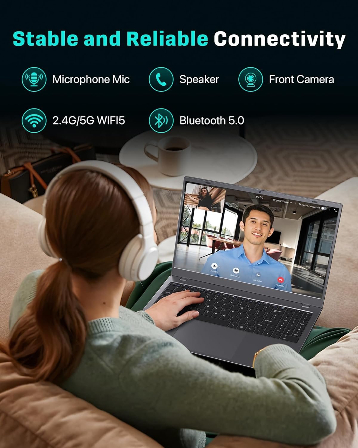 【No Dongles Needed】 Equipped with USB 3.2, full-function Type-C, HDMI, and a TF card slot, this pc laptop connects directly to monitors, projectors, printers, storage devices, and everyday peripherals—no adapters required. Stable Wi-Fi 5 and Bluetooth 5.2 ensure reliable wireless connections for study, work, and presentations wherever you use it.