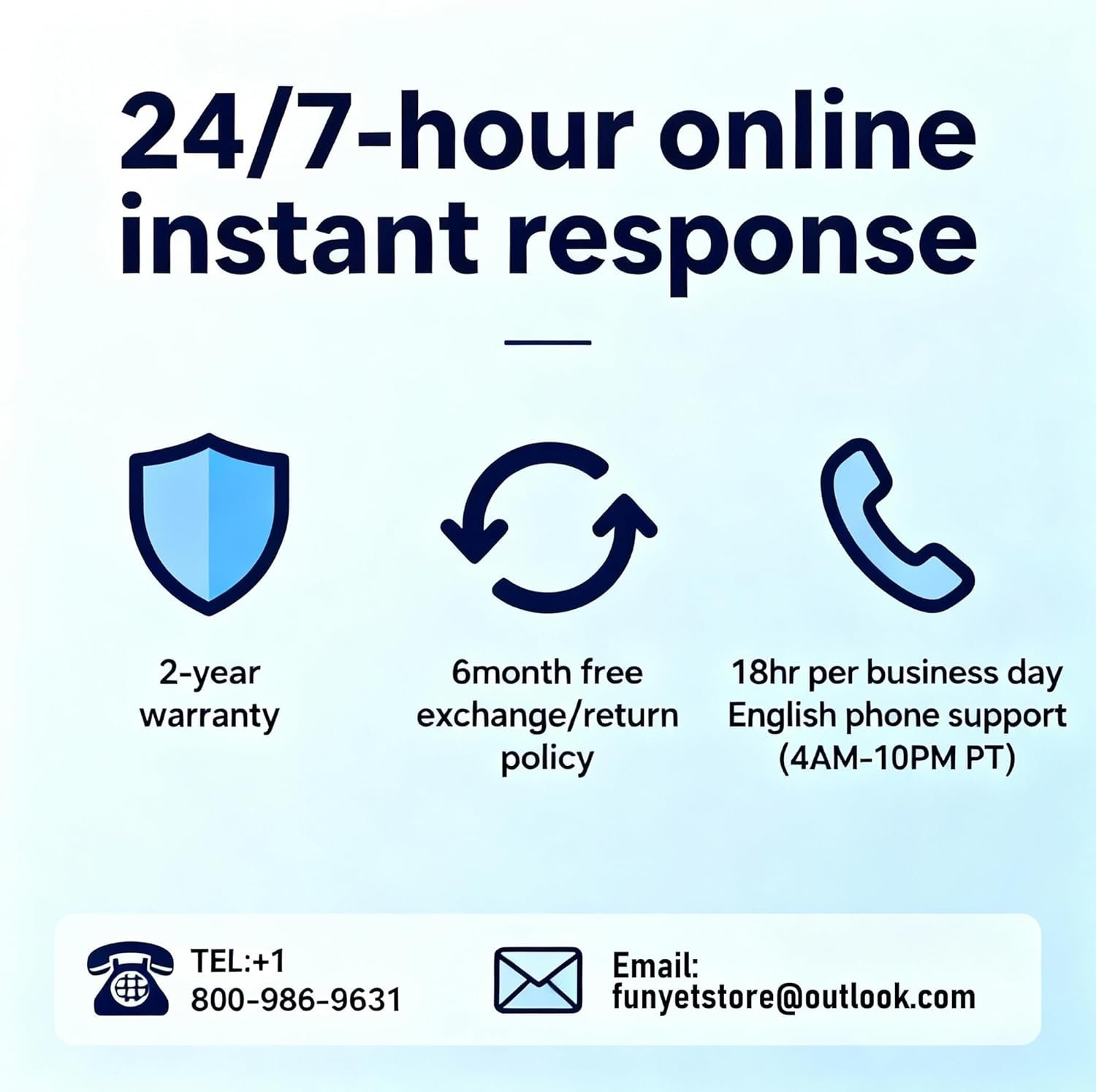 Peace of Mind Warranty: Enjoy worry-free usage with a 2-year warranty, six months of free replacement/return service, 24/7 online support with instant responses, and phone support available every business day from 4 PM to 10 PM Pacific Time. We’re dedicated to providing continuous support, ensuring your experience with FUNYET is smooth and reliable.