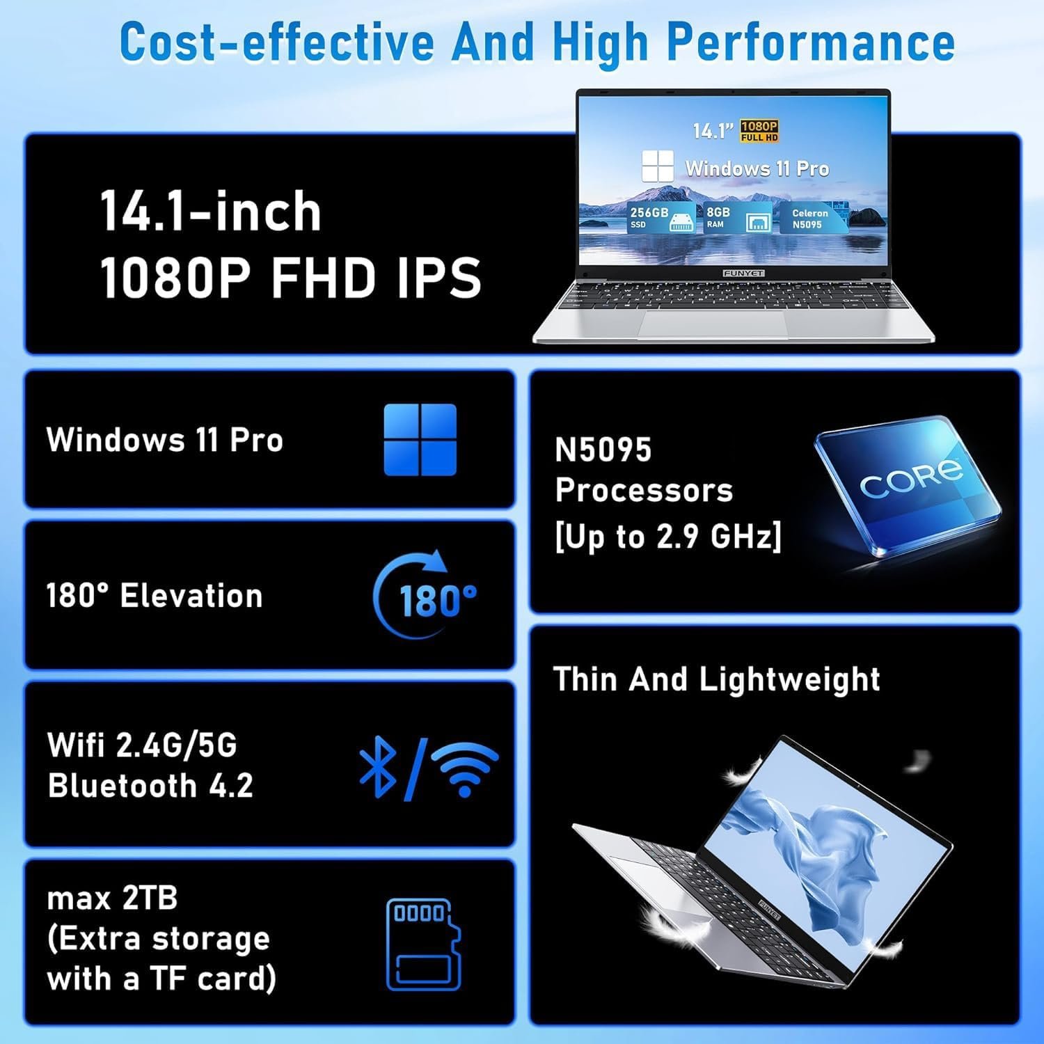 Unmatched Performance: Powered by an 11th generation Celeron N5095 processor with 4 cores and 4 threads, this laptop ensures seamless operations at speeds of up to 2.9 GHz, delivering an unmatched level of performance, whether for work or play.