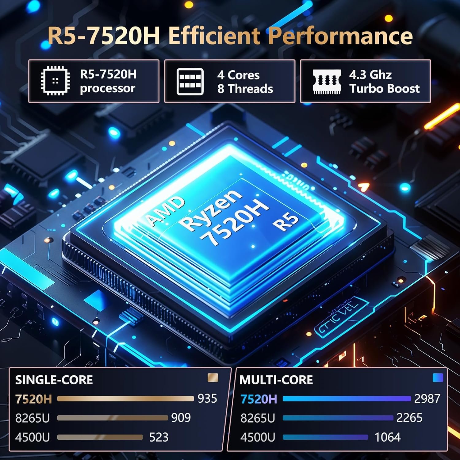Powerful Performance for Work & Study: Laptop equipped with an AMD Ryzen 5-7520H Processor (up to 4.3 GHz) and substantial 32GB DDR4 RAM. This combination ensures smooth multitasking, fast application loading, and efficient handling of your daily workloads, from complex office documents to numerous browser tabs.