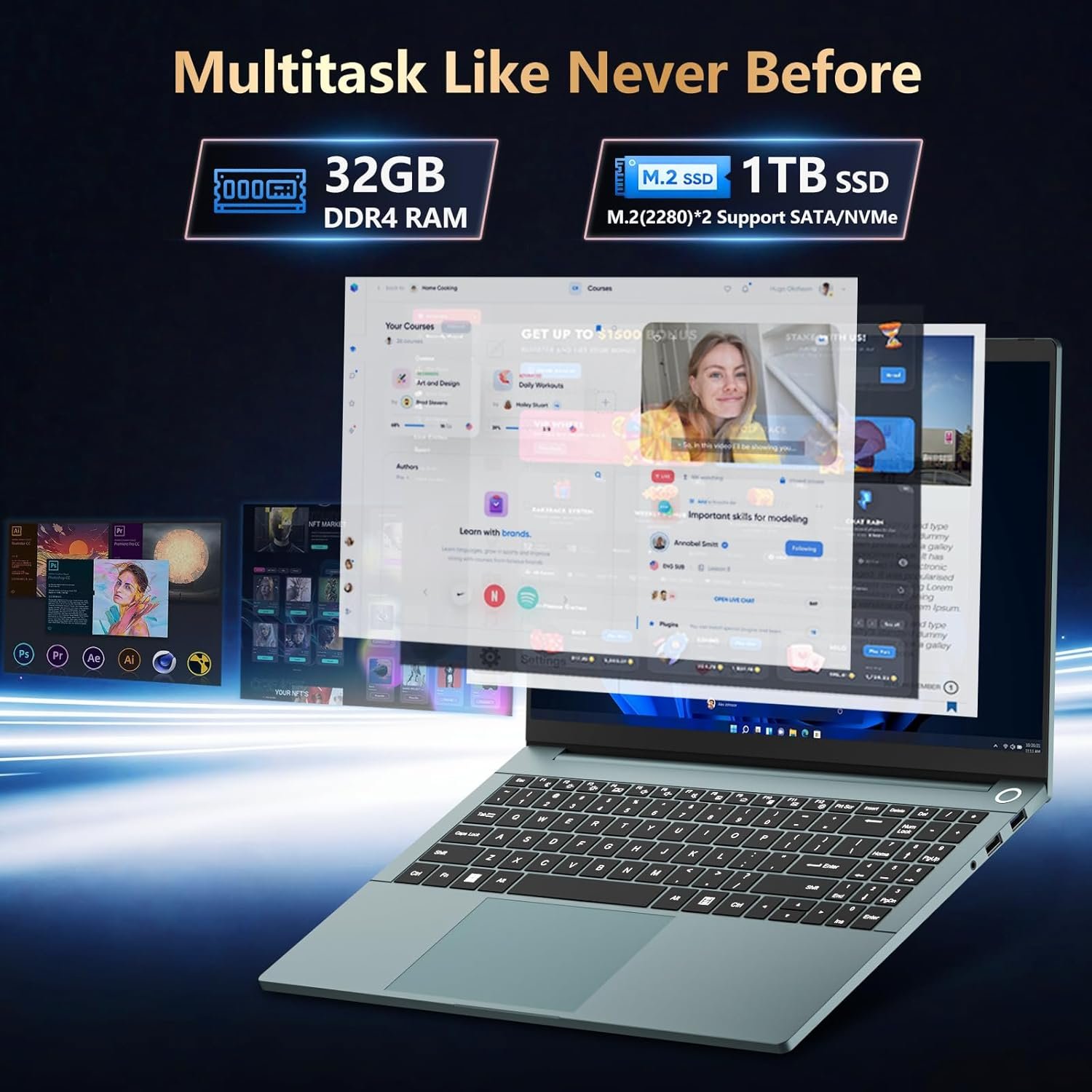Expansive Storage & Vivid Display: Laptop computer features a high-speed 1TB SSDwith NVMe M.2 2280 PCIe 3.0 and SATA 3.0 support. It boots quickly and provides ample storage for all your files, games, and projects. The PC laptop 15.6-inch Full HD narrow-bezel screen with 250 nits brightness delivers crisp, clear visuals and an immersive viewing experience for work and entertainment.