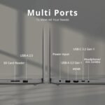 [Tech Specs] 1 x SD Card reader, 1 x USB 2.0, 1 x Power connector, 1 x USB 3.2 Gen 1, 1 x HDMI, 1 x USB-C 3.2 Gen 1, 1 x Headphone / microphone combo jack (3.5mm); Webcam; Wi-Fi 6 and Bluetooth