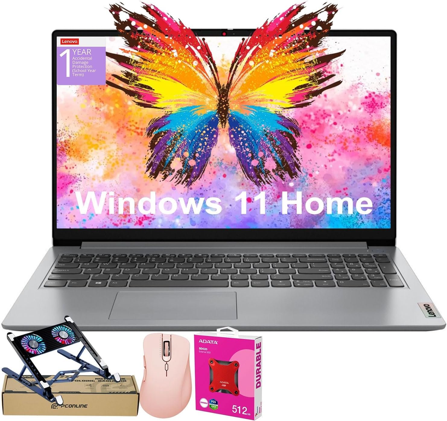 [Reliable Everyday Laptop with Practical Accessories] The Lenovo IdeaPad 1 is a dependable laptop built for daily use—whether you’re working from home, browsing the web, managing finances, or catching up on shows. It comes with a stable Intel Celeron N6000 processor and a well-rounded accessory set, including a mouse, a cooler, and an external 512GB SSD to enhance your experience right out of the box. This laptop is upgraded based on model 82LX00G1US.