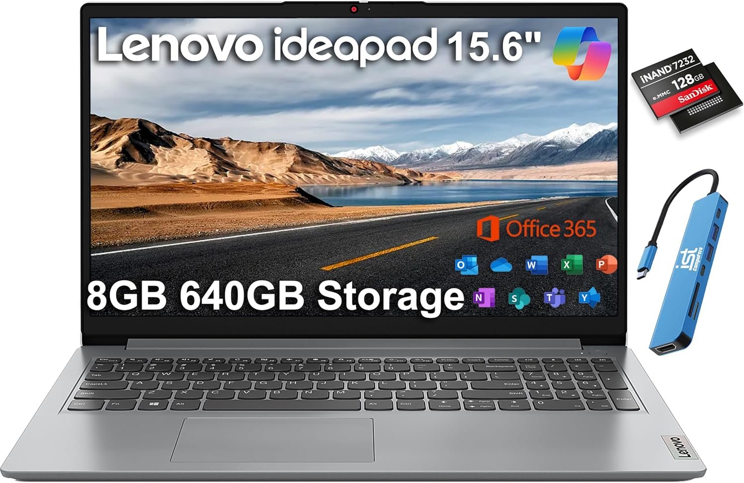 Lenovo IdeaPad 1i 15.6″ HD Laptop (8GB RAM, 512GB SSD + 128GB eMMC, 1-Year Micro…