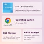 ✅ FAST AND RESPONSIVE PERFORMANCE: Powered by an Intel Celeron N4500 processor and 4GB RAM, this Chromebook handles everyday tasks like browsing, streaming, and schoolwork smoothly and efficiently.