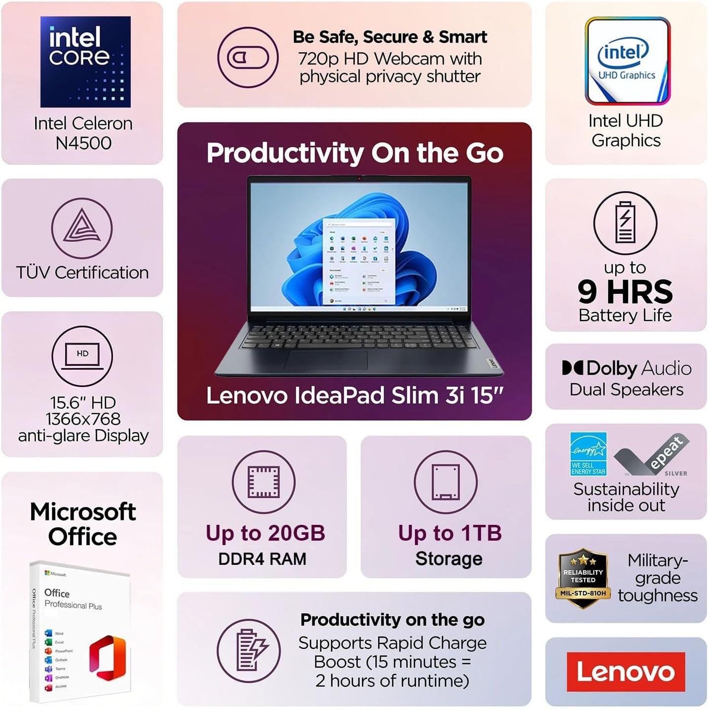 Lenovo IdeaPad Slim • 15.6″ Laptop with Microsoft 365 Included • Intel Processor…