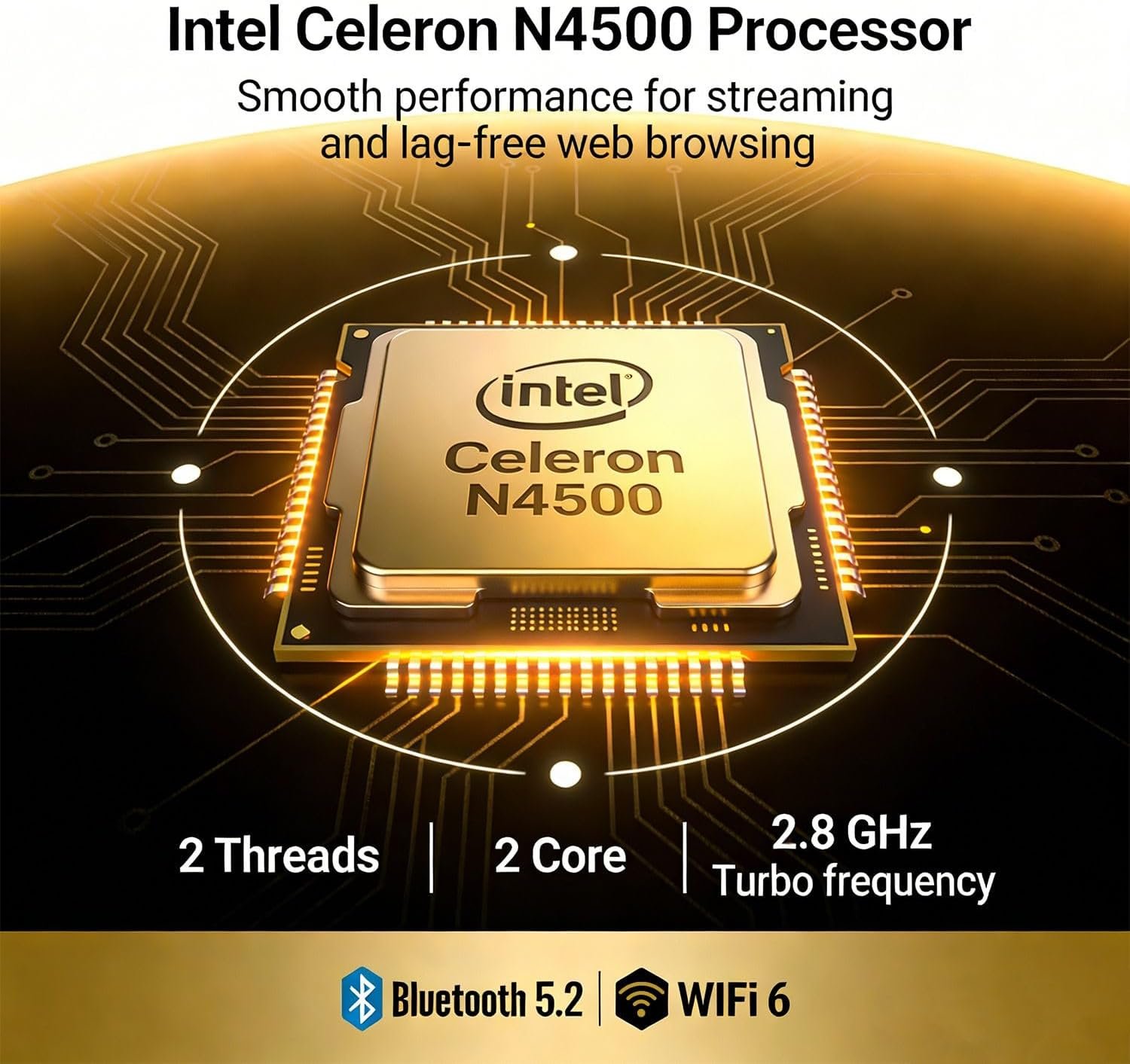 【Processor】 Intel Celeron N4500 Processor (up to 2.8 GHz, 2 Cores, 2 Threads)