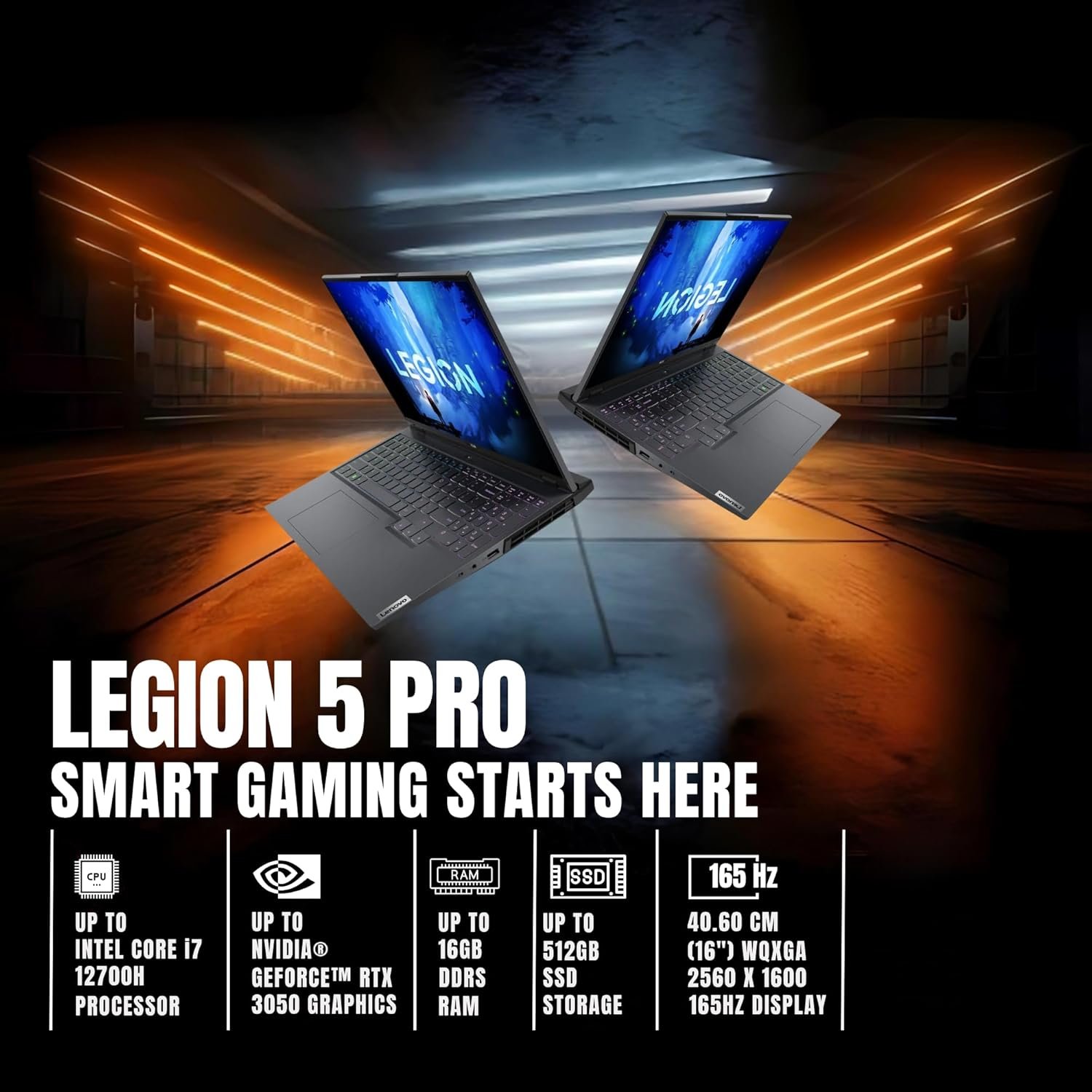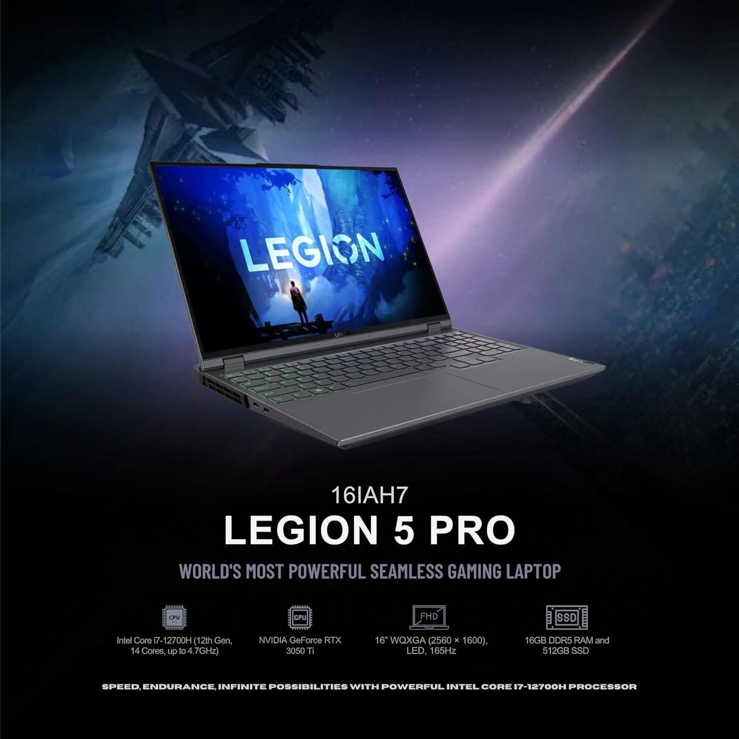 Experience the perfect balance of performance, precision, and power with the Lenovo Legion 5 Pro 16IAH7, a high-performance gaming and productivity laptop built for modern creators, professionals, and gamers. With an advanced cooling system, immersive visuals, and cutting-edge hardware, this device is your all-in-one performance powerhouse. Powered by the 12th Generation Intel Core i7-12700H processor with 14 cores and up to 4.7GHz turbo speed, the Legion 5 Pro ensures superior speed and multitasking. Paired with the NVIDIA GeForce RTX 3050 Ti graphics coprocessor, it delivers smooth frame rates and realistic visuals powered by ray tracing and AI-enhanced rendering for both gaming and creative work. The 16-inch WQXGA (2560 × 1600) display provides stunning color accuracy and clarity with a 165Hz refresh rate, perfect for gaming, design, and entertainment. With 16GB DDR5 RAM and a 512GB SSD, the laptop guarantees faster load times, seamless multitasking, and enhanced productivity. Featuring a Storm Gray chassis with a 4-zone RGB backlit keyboard, it combines premium aesthetics with exceptional functionality. The Legion Coldfront thermal design keeps performance stable during extended gaming sessions, while Wi-Fi 6 and Bluetooth 5.1 deliver fast, reliable connectivity.
