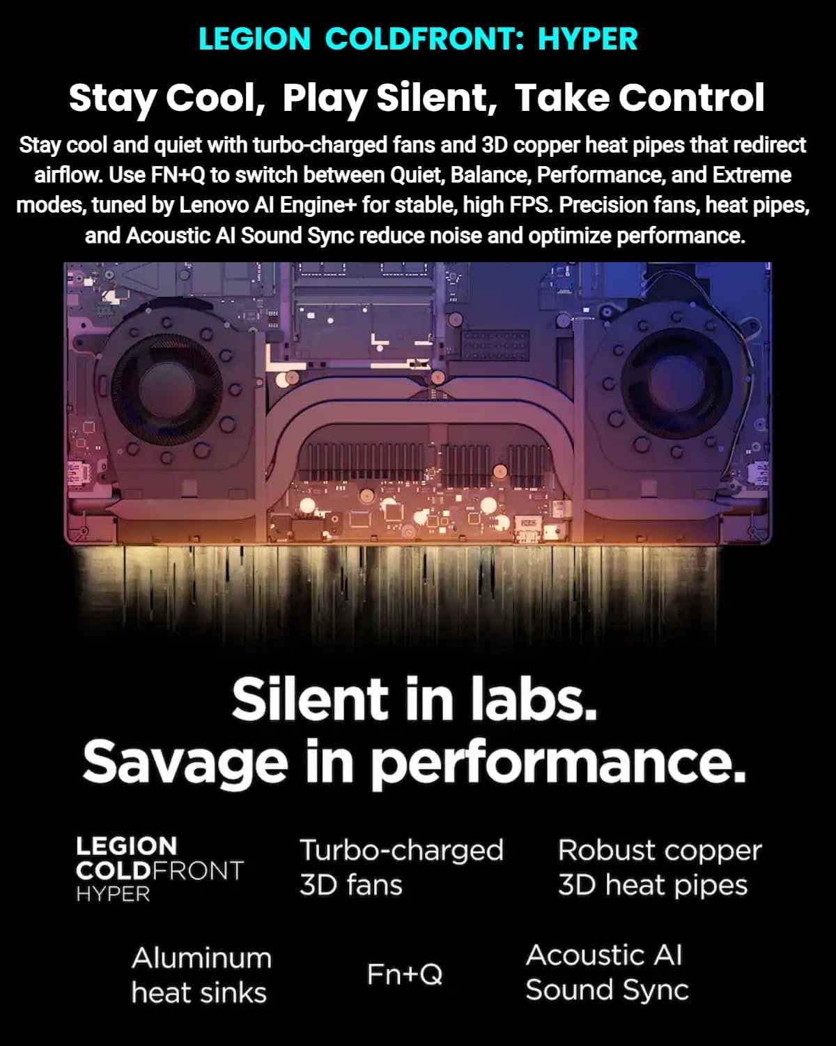 ❄️ Coldfront Hyper Cooling: With AI thermal tuning, vapor chambers, and dual turbo fans, the lenovo legion gaming laptop maintains cool performance even during marathon gaming. Designed for silence, stability, and peak output, it ensures zero throttling no matter the intensity.