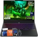OLED Clarity for Pro-Level Gaming: Game in stunning detail on a 16” WQXGA OLED display (2560×1600) with a 240Hz refresh rate and <0.5ms response time. Enjoy deeper blacks, vivid colors (100% DCI-P3), Dolby Vision, NVIDIA G-SYNC, and TUV Rheinland certification for longer, safer viewing