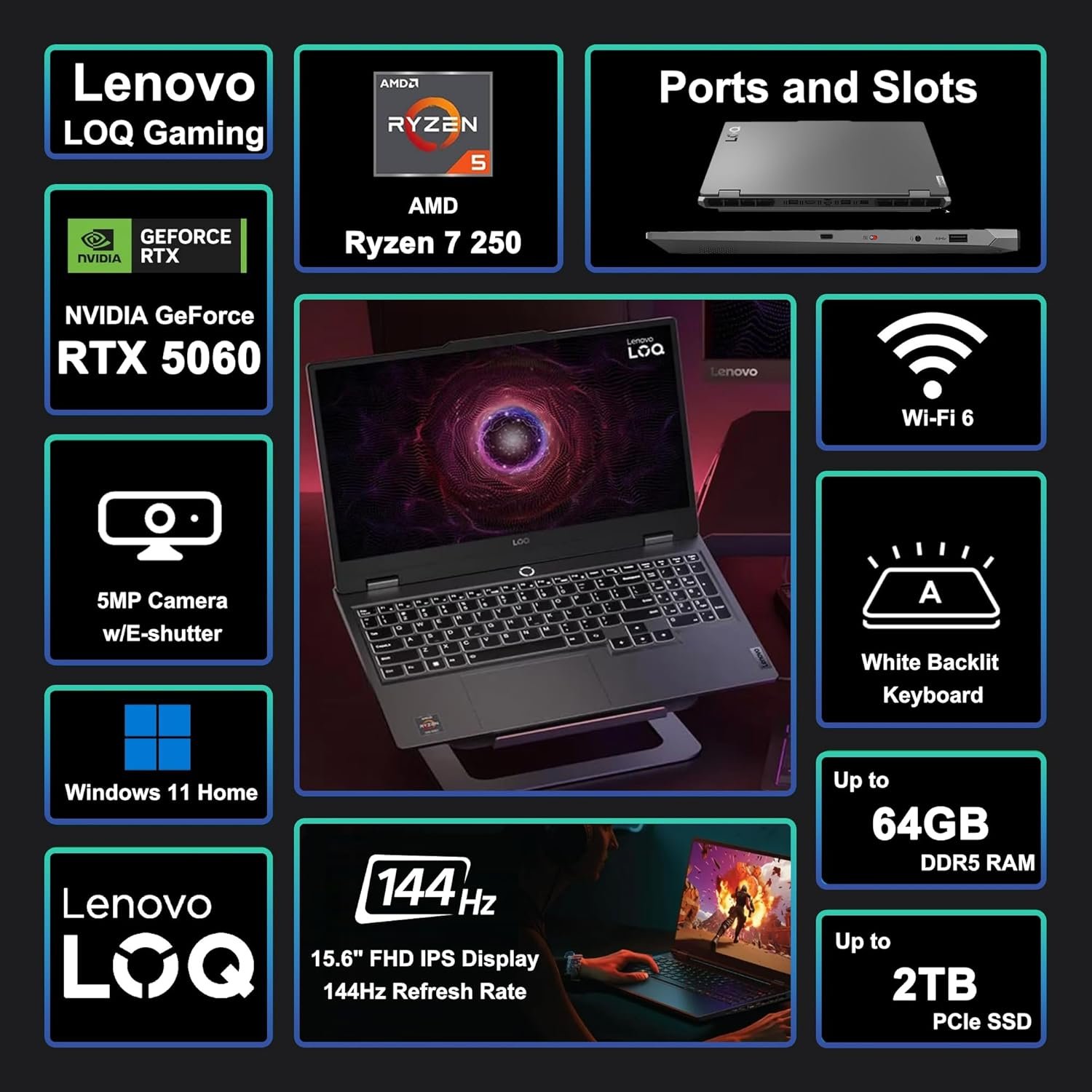 Lenovo LOQ Gaming AI Laptop 15.6″ FHD IPS 144Hz (100% sRGB G-SYNC) AMD Octa-core…